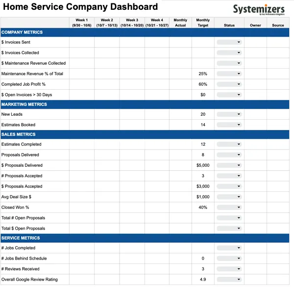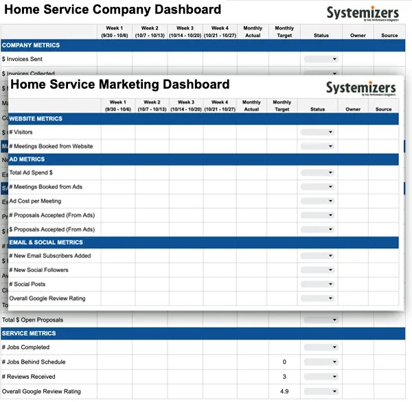 Strengthen Customer Retention: Ensure customer satisfaction by tracking Jobs Completed, Reviews Received, and maintaining a high Google Review Rating.